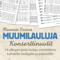 ![]() | Muumilauluja konserttinuotit (2024)Tove Jansson, Erna Tauro, Mika PohjolaDOWNLOAD 29€ | ![]() | Moomin Music (2024)Tove Jansson, Erna Tauro with Mika Pohjola, Johanna GrüssnerDOWNLOAD 29€ CD+DOWNLOAD 32€ |